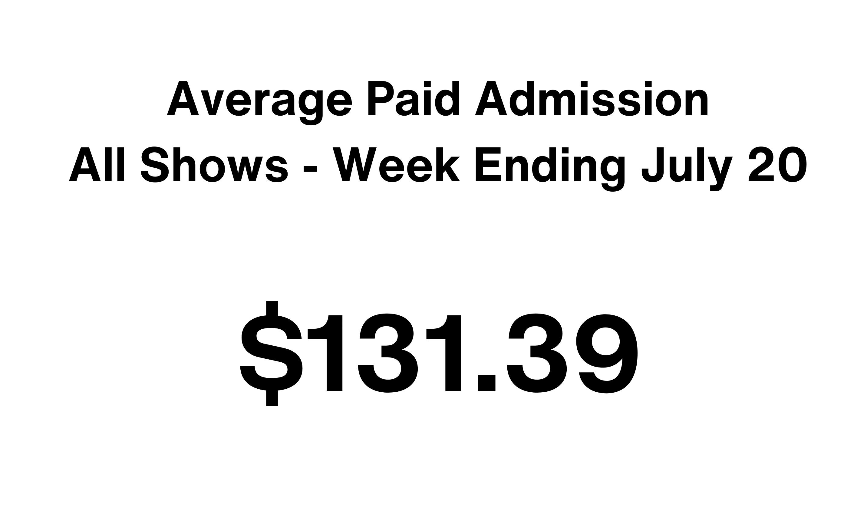 This week, the average paid admission across all Broadway shows rose to $131.39, a 5% increase from last week’s average.