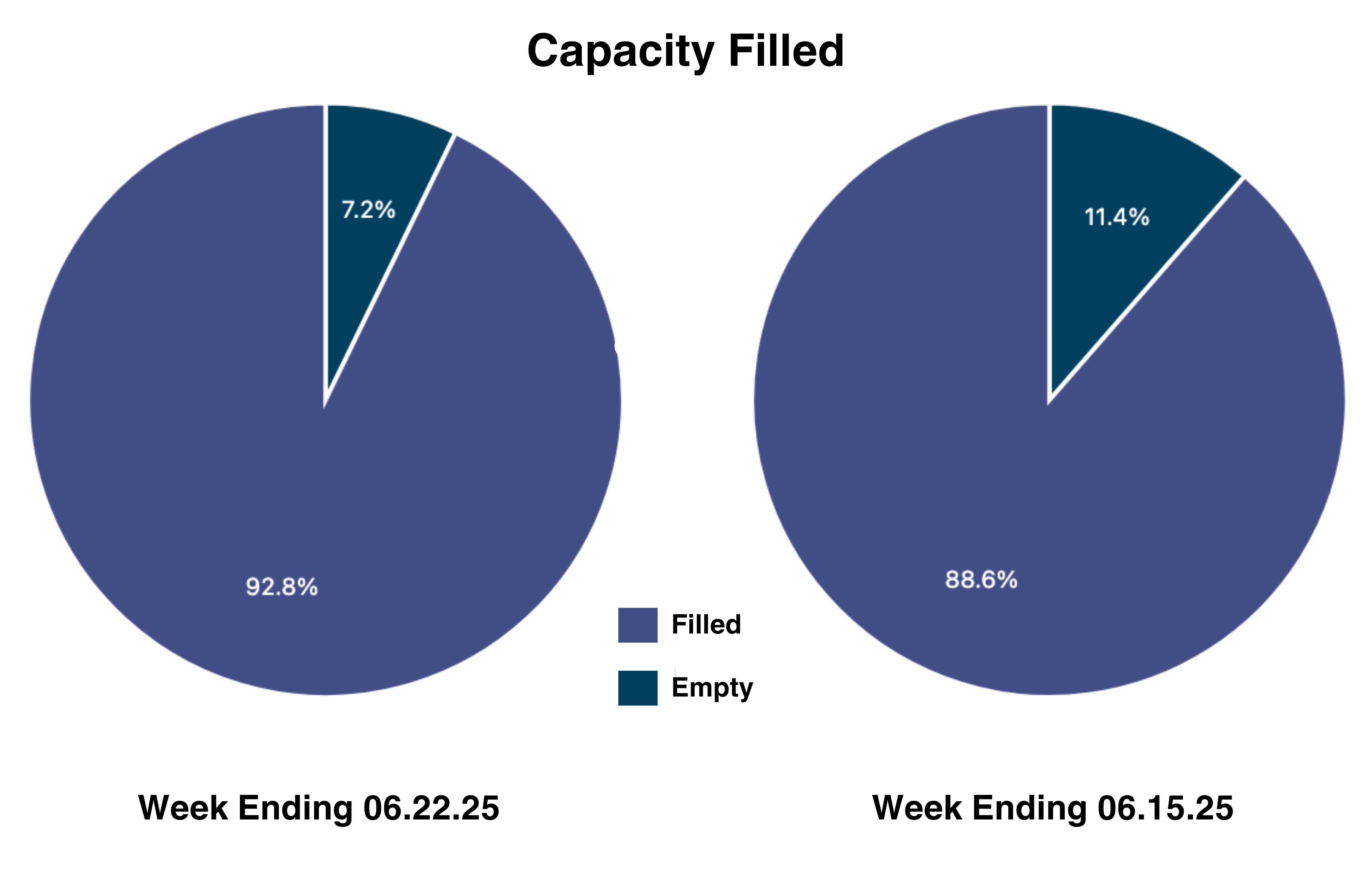 92.8% total capacity filled this week, versus 88.6% the previous week.