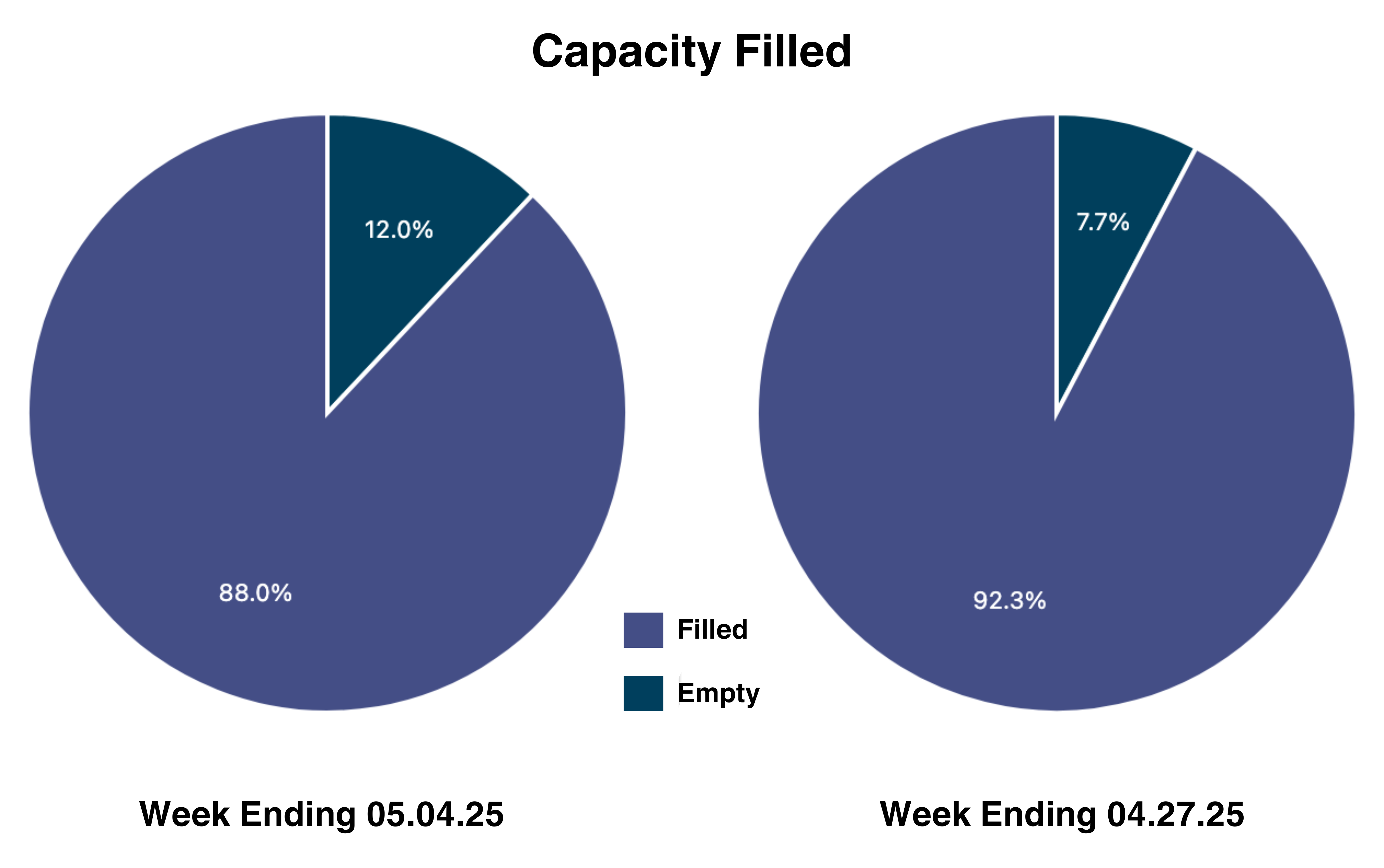 88% capacity filled this week, versus 92.3% last week.