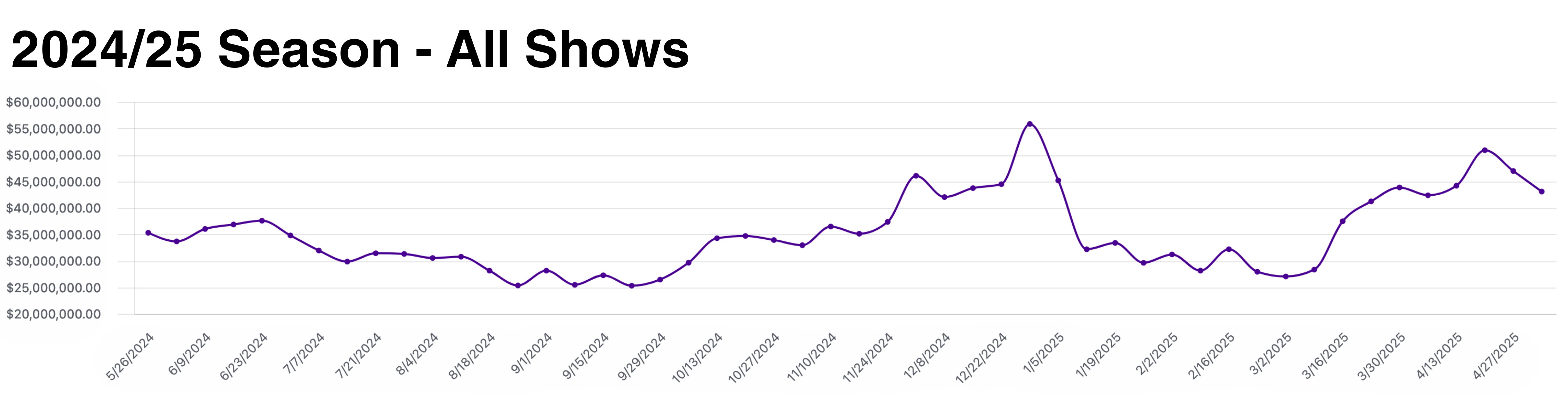 This week there were a total of 40 shows grossing $43,063,490.