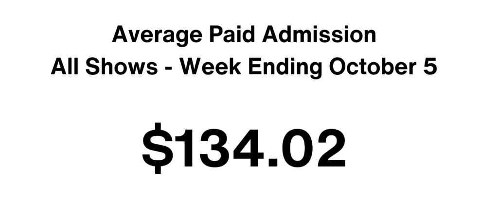 This week, the average paid admission across all Broadway shows rose to $134.02, a 1.7% increase from last week’s average.