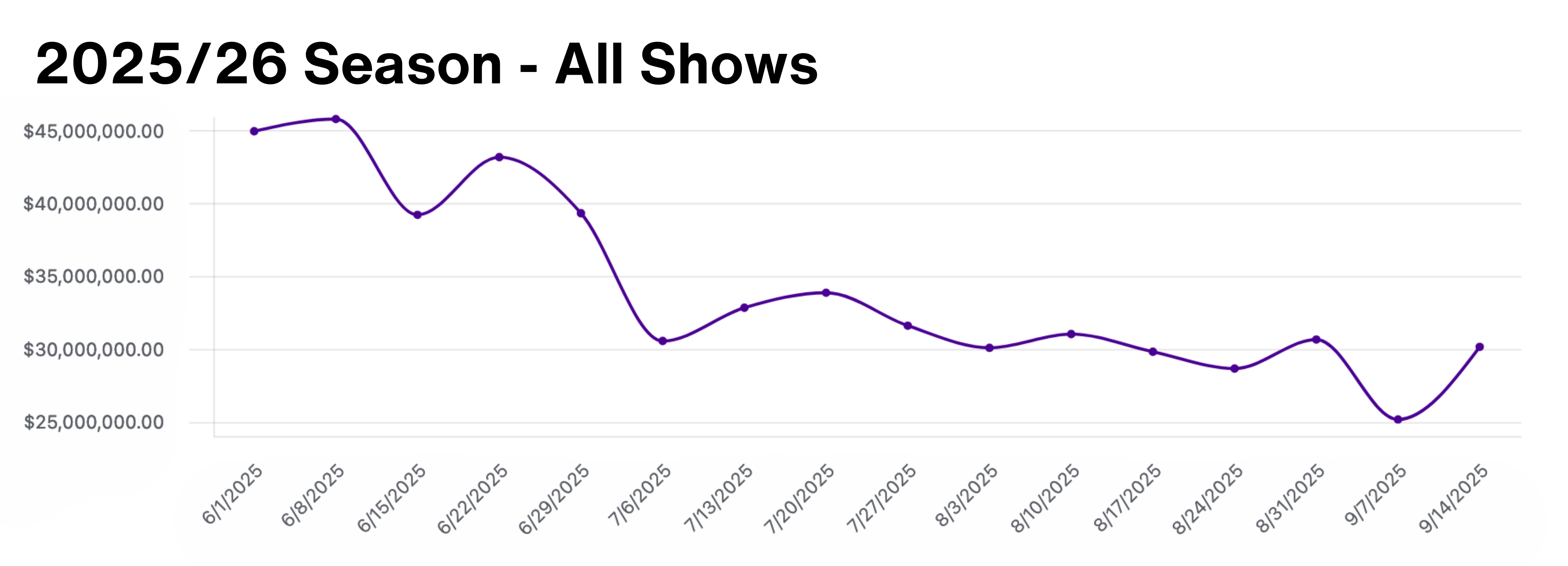 This week there were a total of 28 shows grossing $30,128,088.