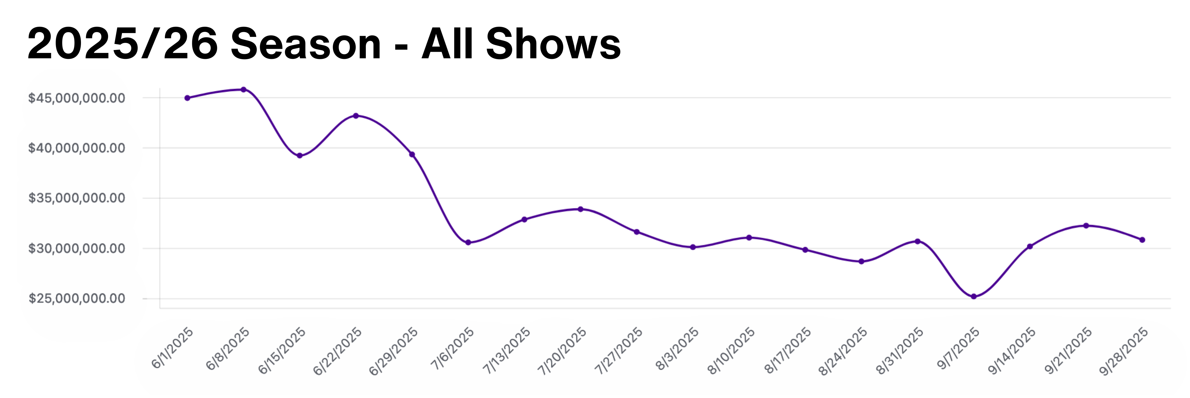 Below, please find the Broadway Grosses for Week Ending September 28, 2025, courtesy of KGM.