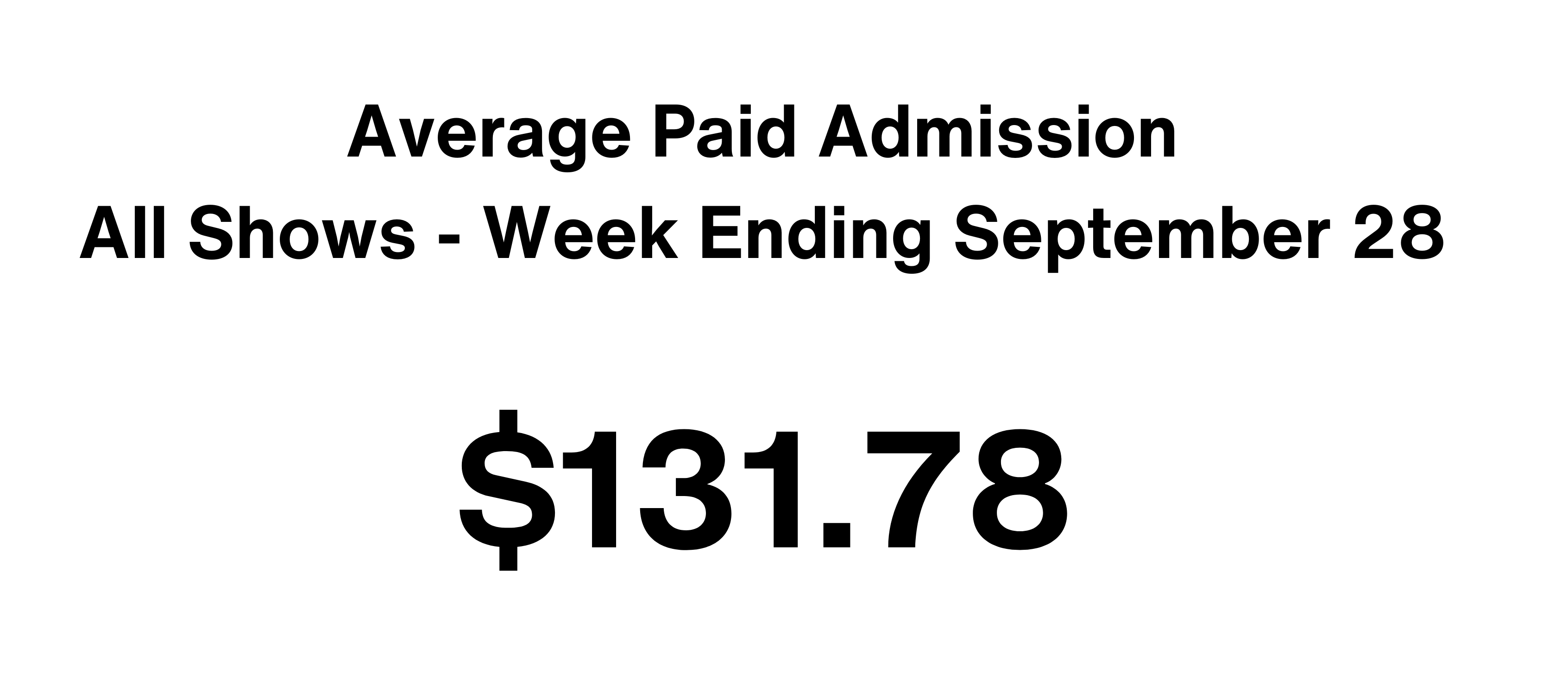 This week, the average paid admission across all Broadway shows rose to $131.78, a 2.0% increase from last week’s average.