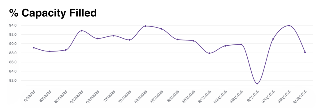 Of the 265,249 seats available for purchase on Broadway this week, 233,580 or 88.1% were filled.